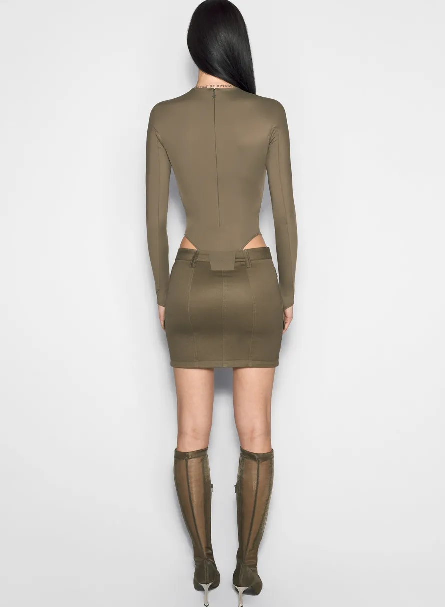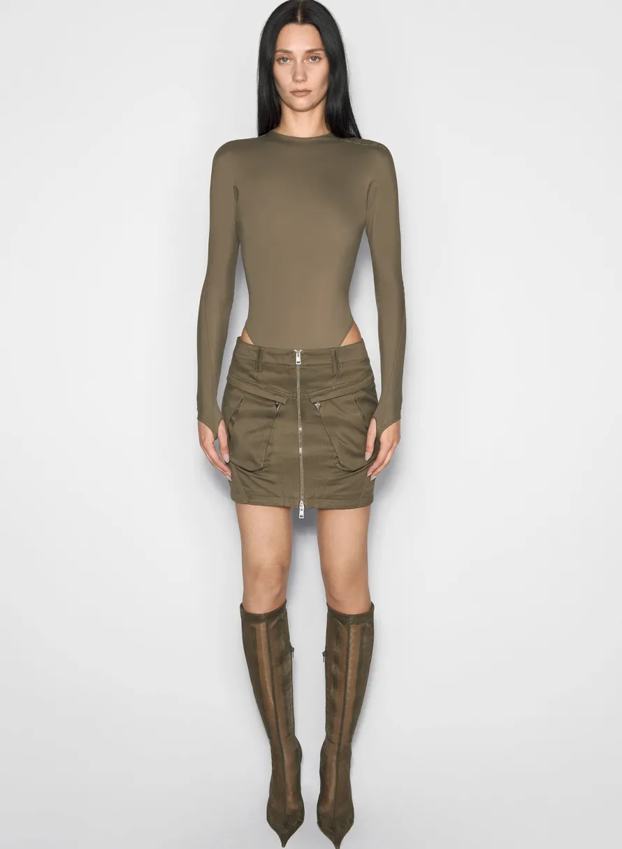 Fitted bodysuit3D logo signature on shoulderCrew neckzip closing on back
