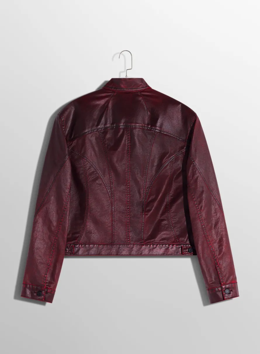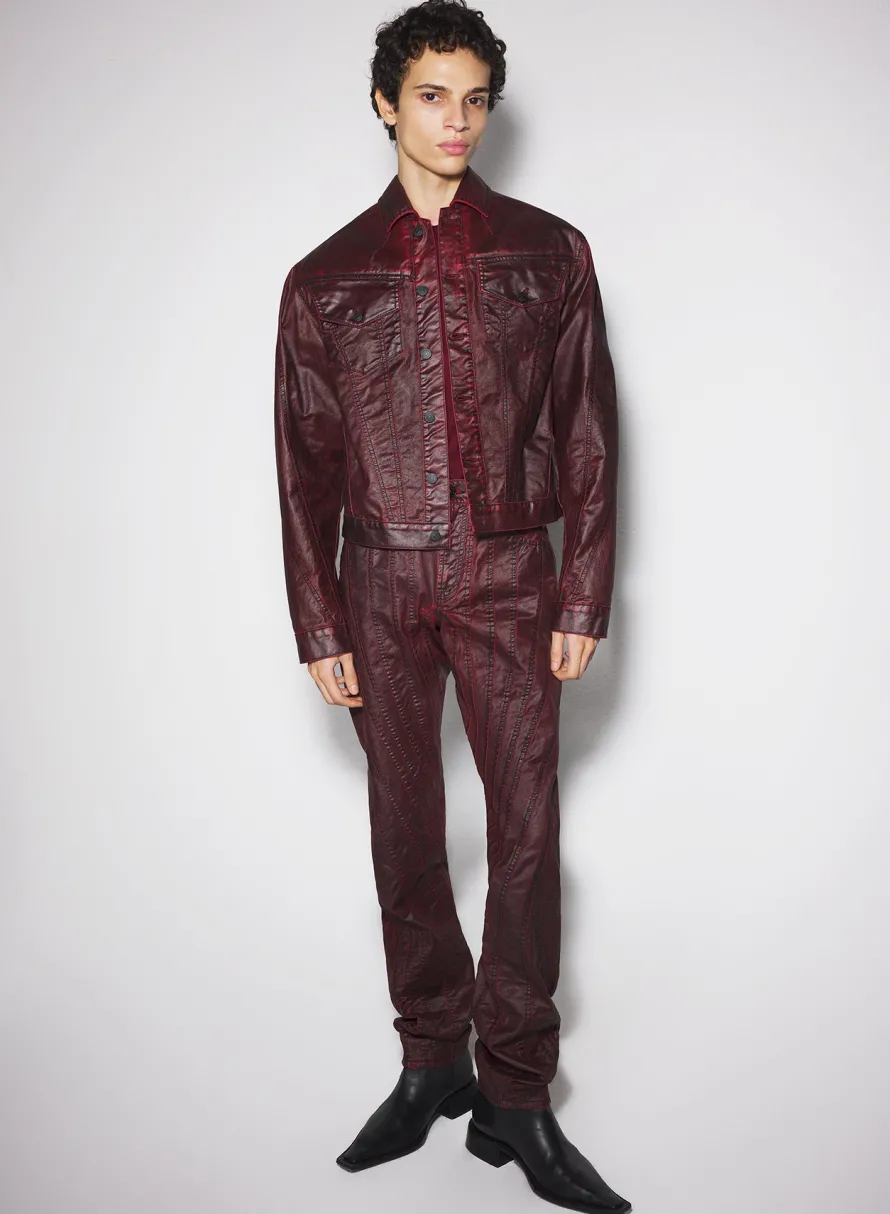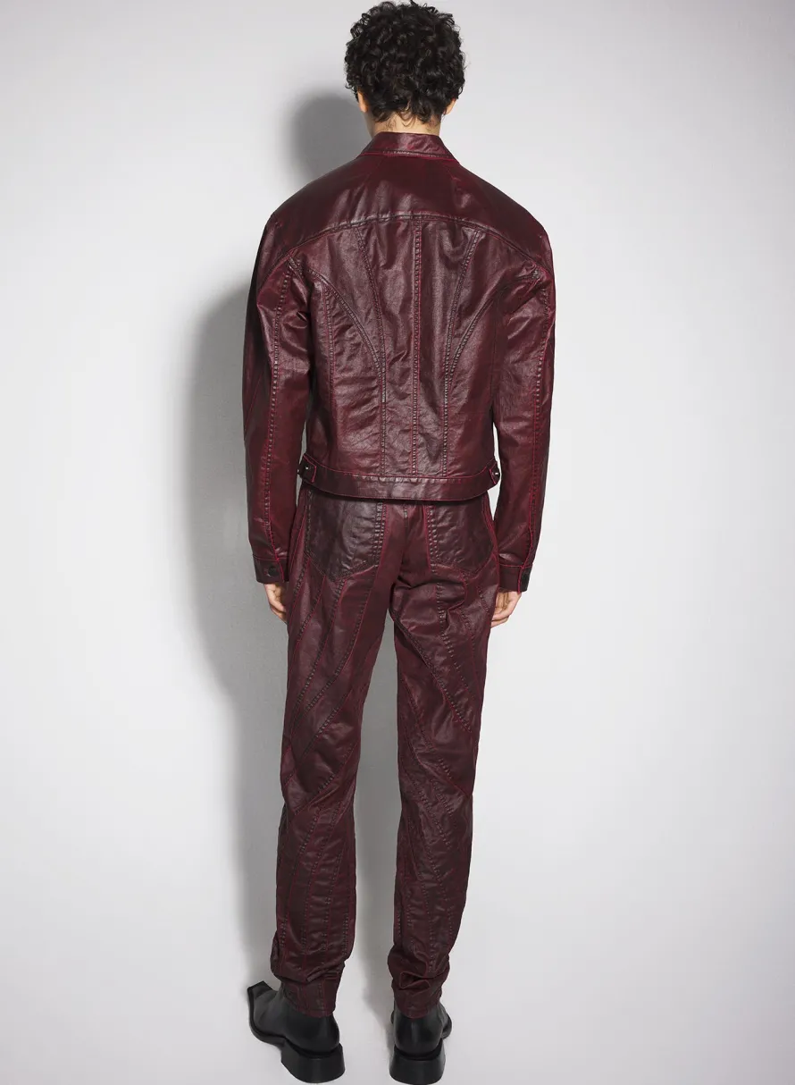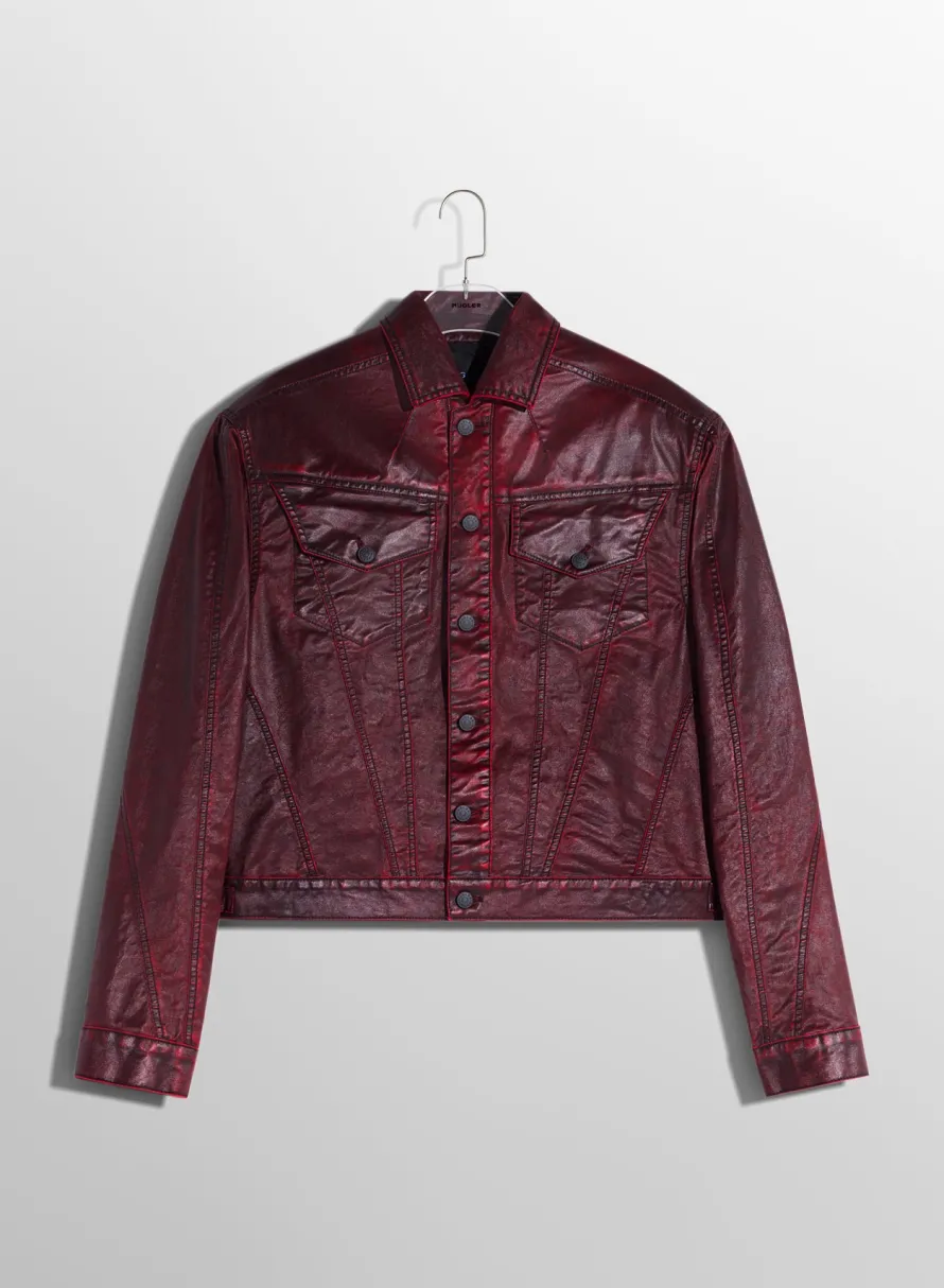 Denim|Denim|MUGLER burgundy waxed denim jacket