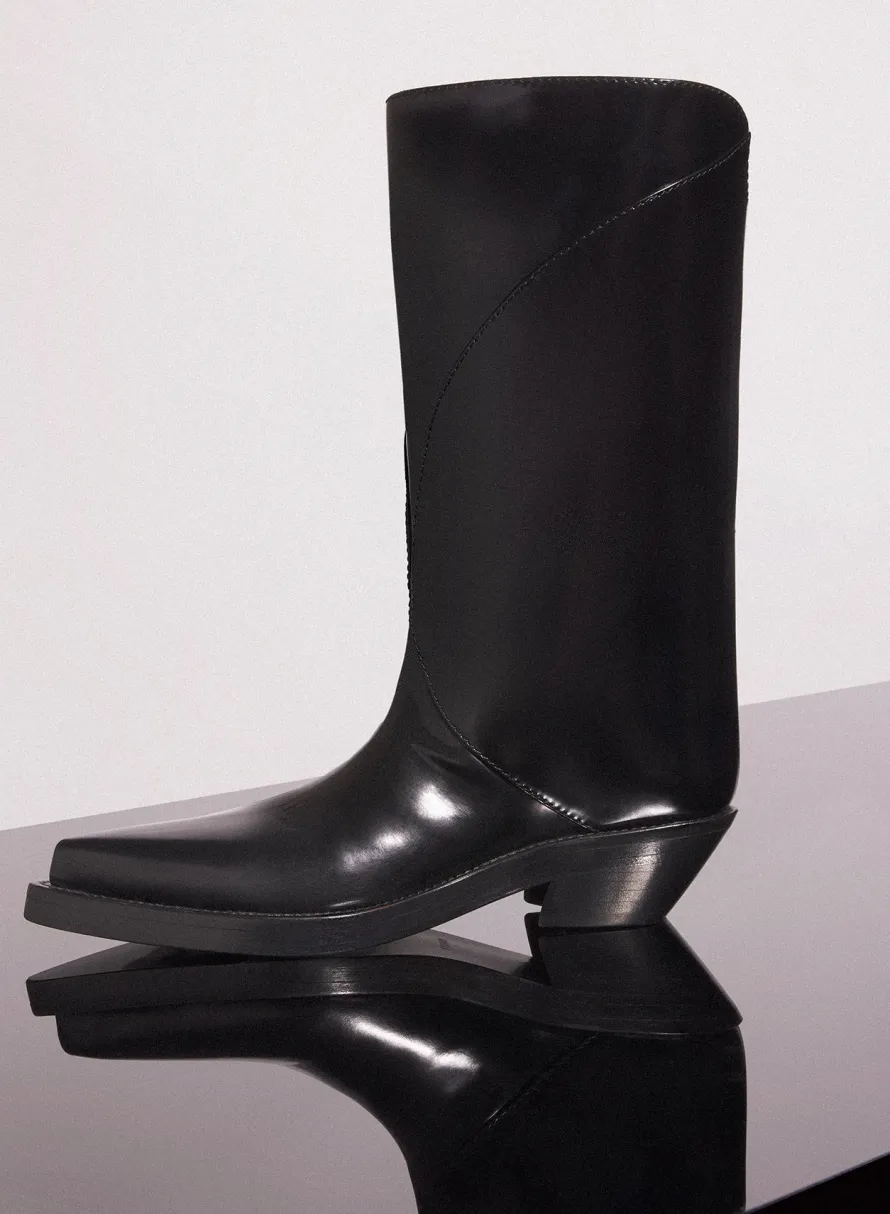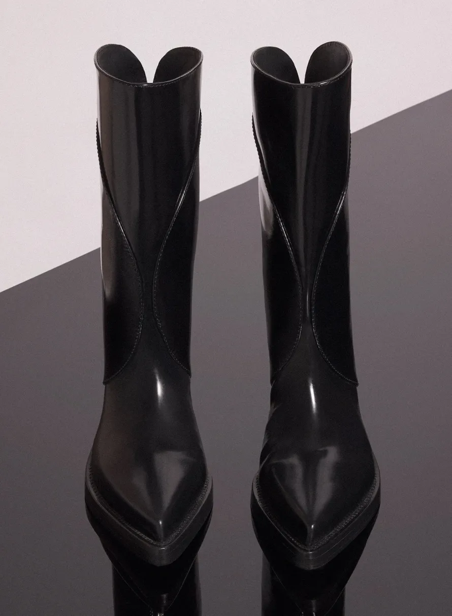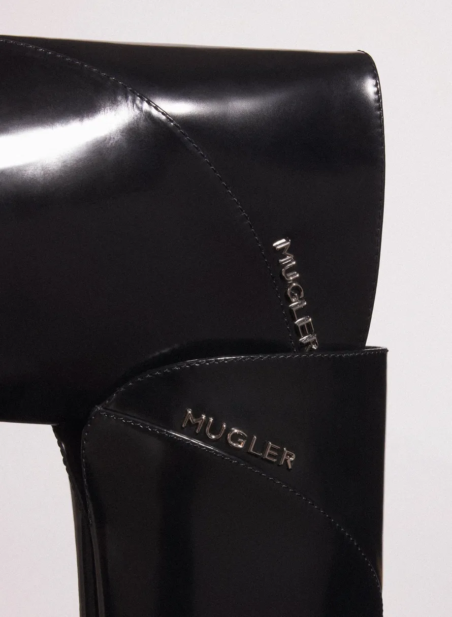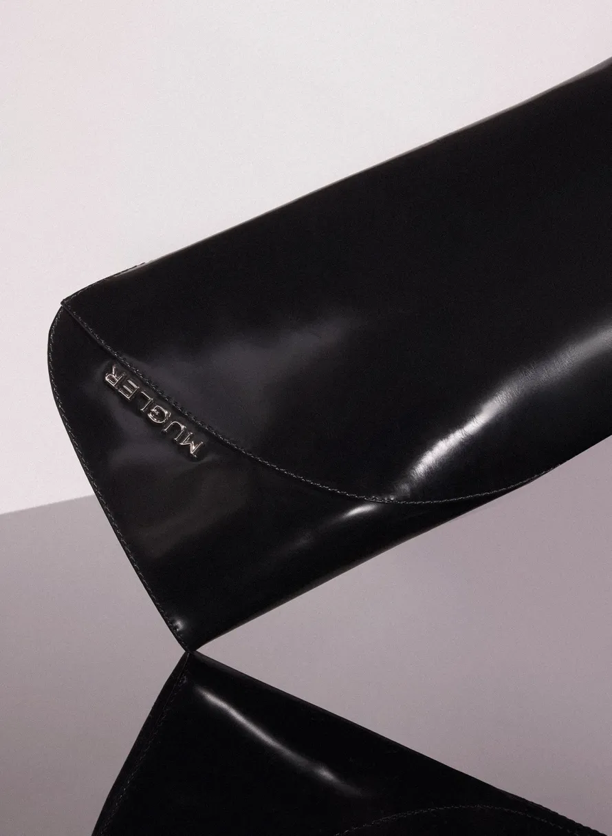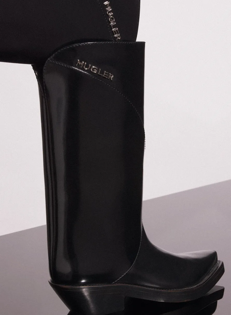 Shoes|MUGLER black shiny leather santiag boots