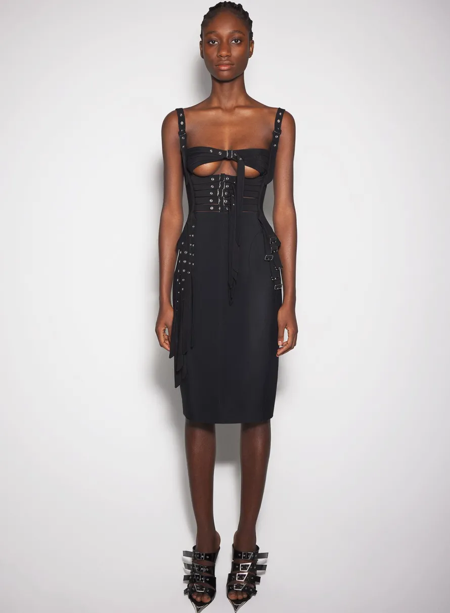 Dresses & Catsuits|MUGLER black slitted tailored bustier dress