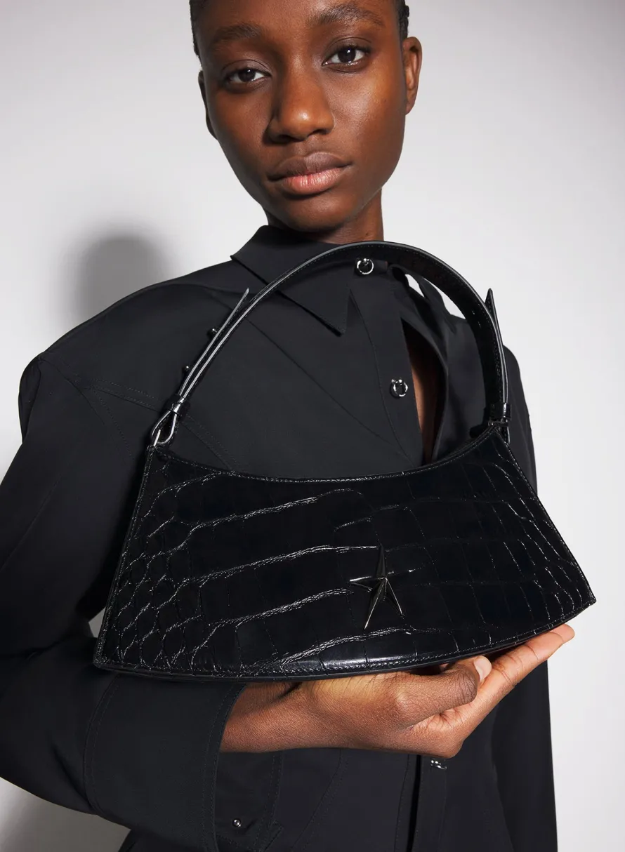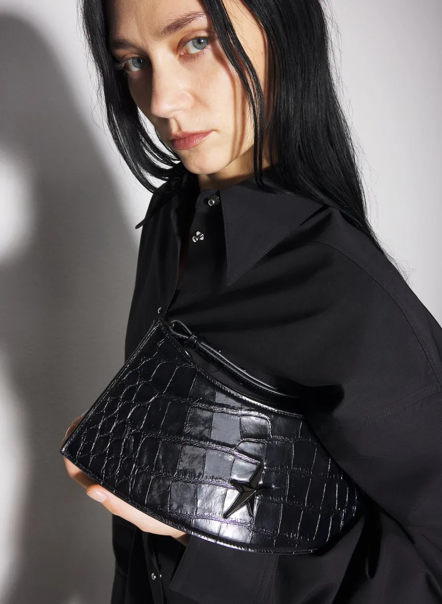 italian leather and construction croco effectsilver metal star hardwarezip fasteningmicrosuede lining using recycled mat…