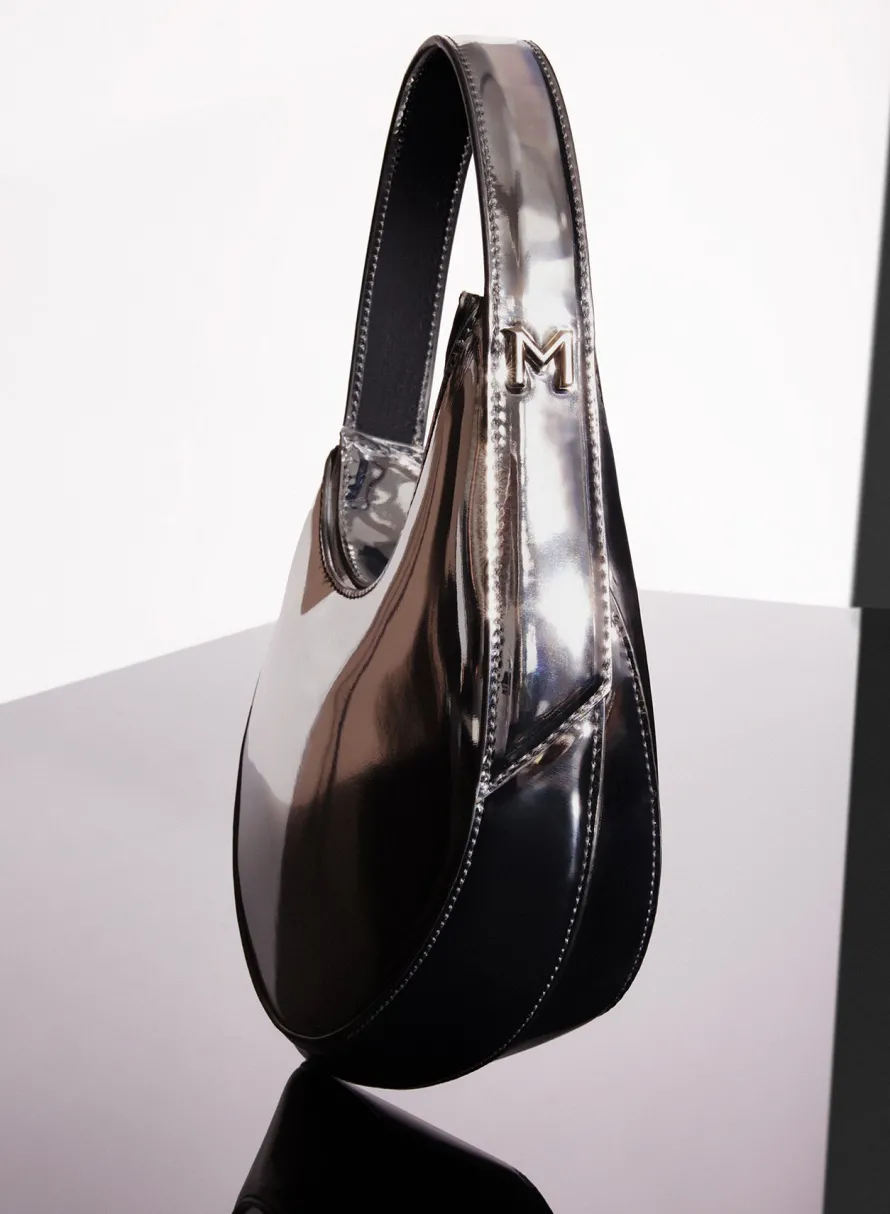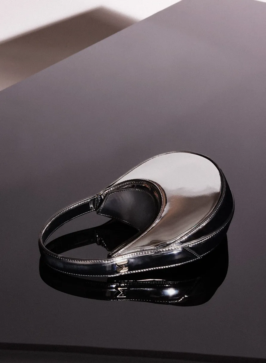 italian leather effect fabric and constructionsilver metal hardware with partially recycled aluminium materialsoverlappe…
