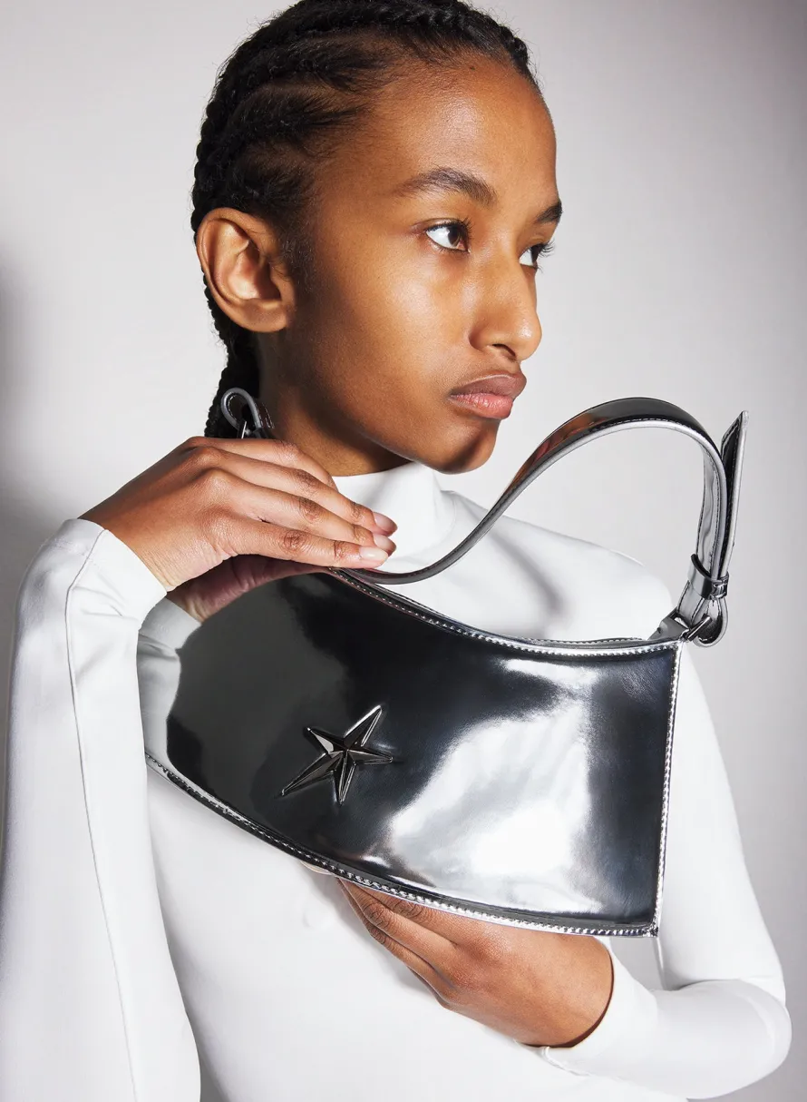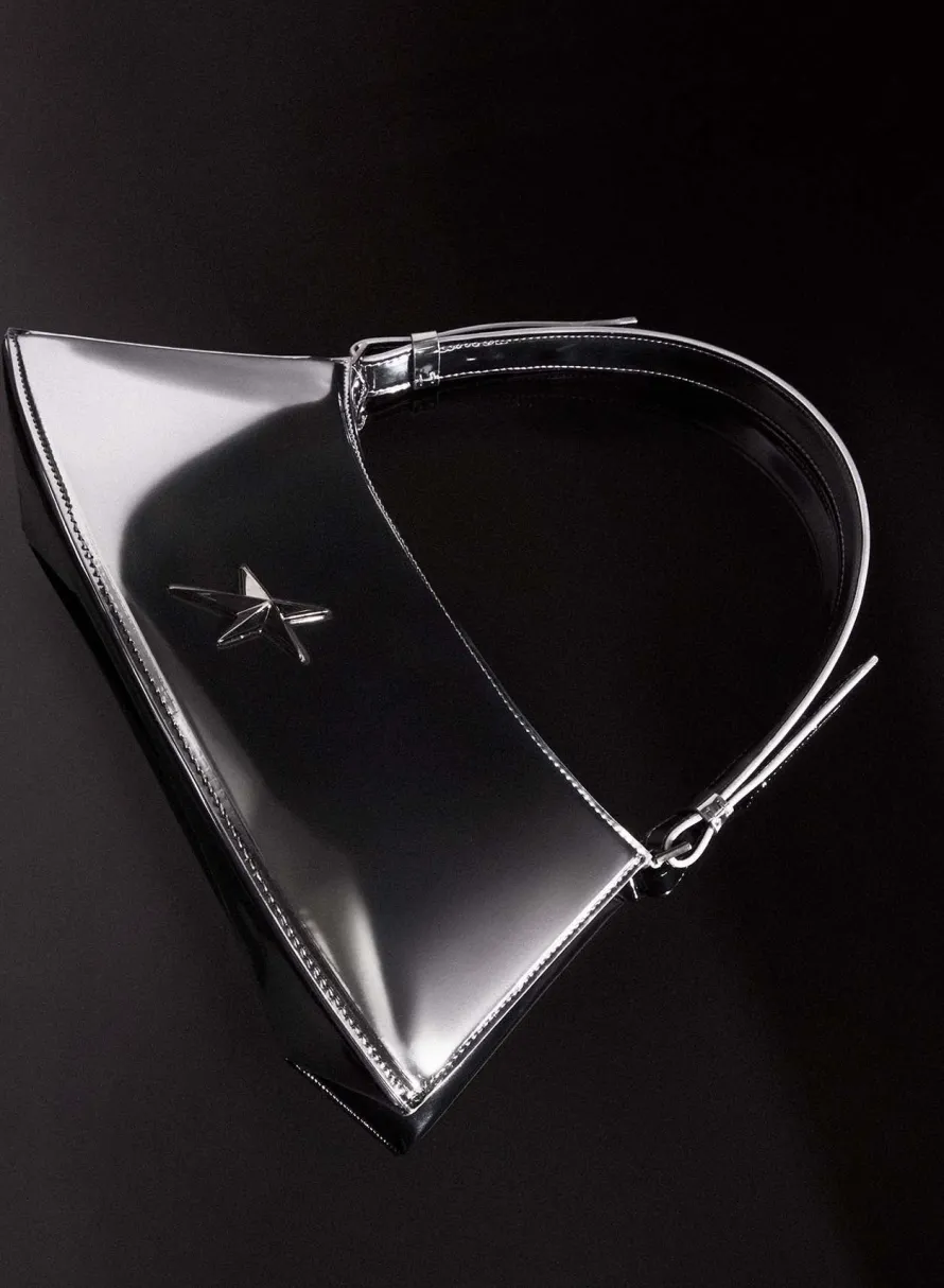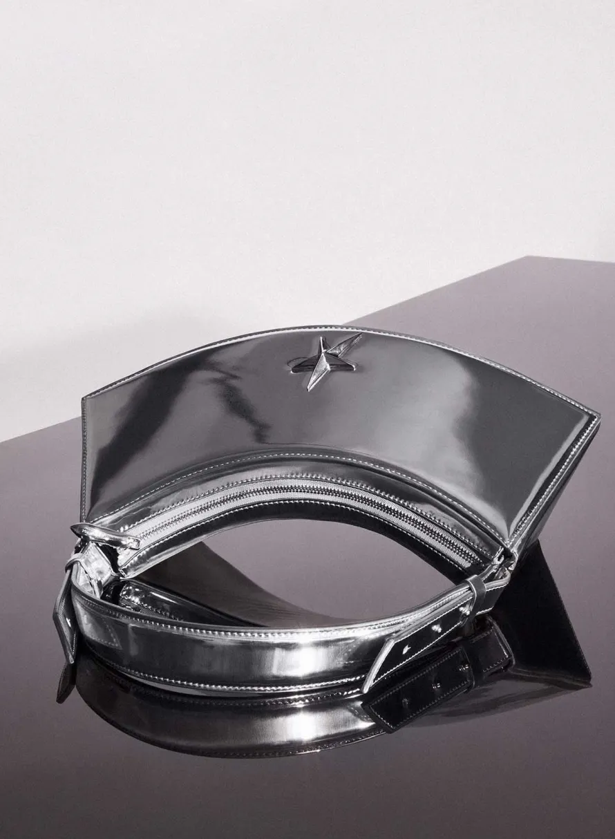 italian constructionsilver metal star hardwarezip fasteningmicrosuede lining using recycled materialinterior pocketh15cm…