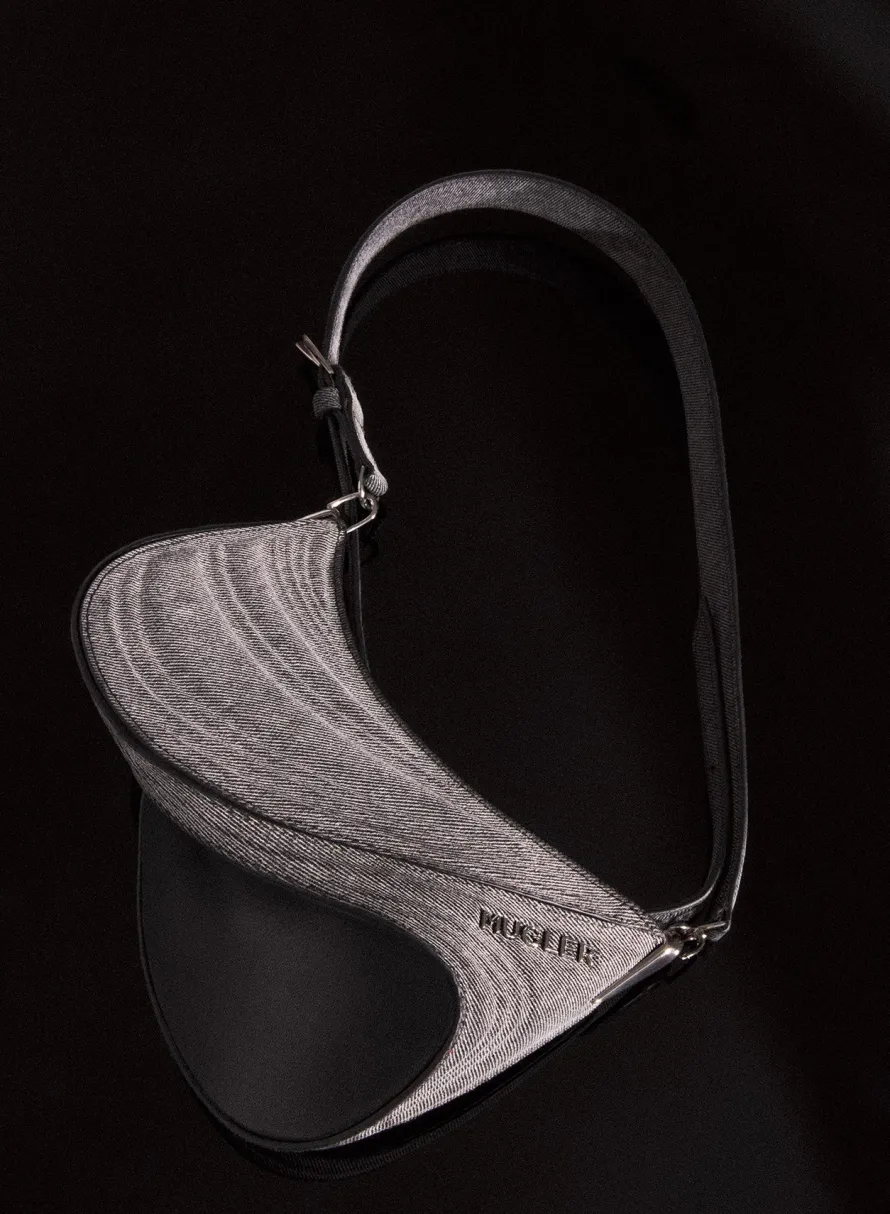 denim and leatherpartially recycled aluminium materialssilver metal logo and hardwarezip closuremicrosuede lining using …