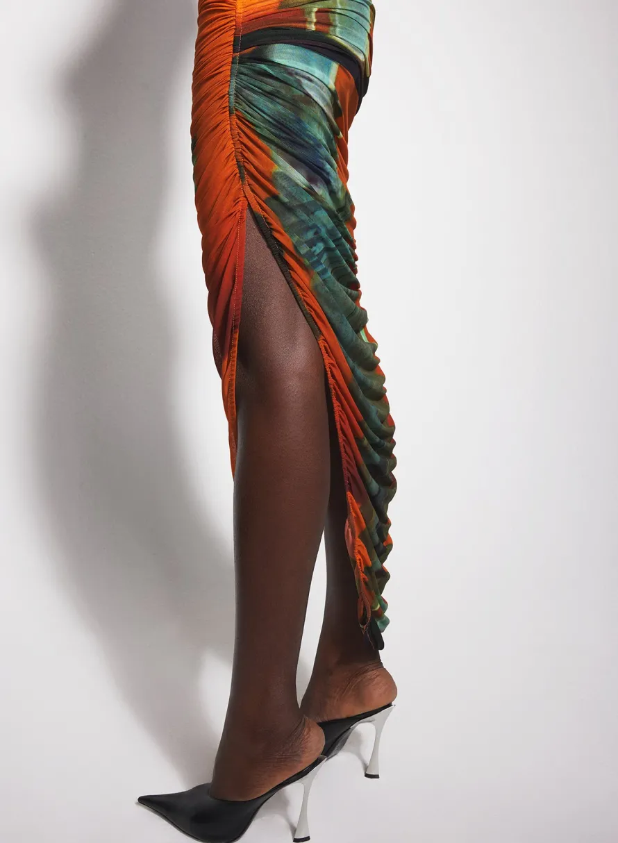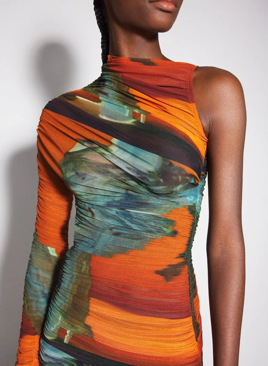 Dresses & Catsuits|MUGLER Archive print asymmetrical mesh dress