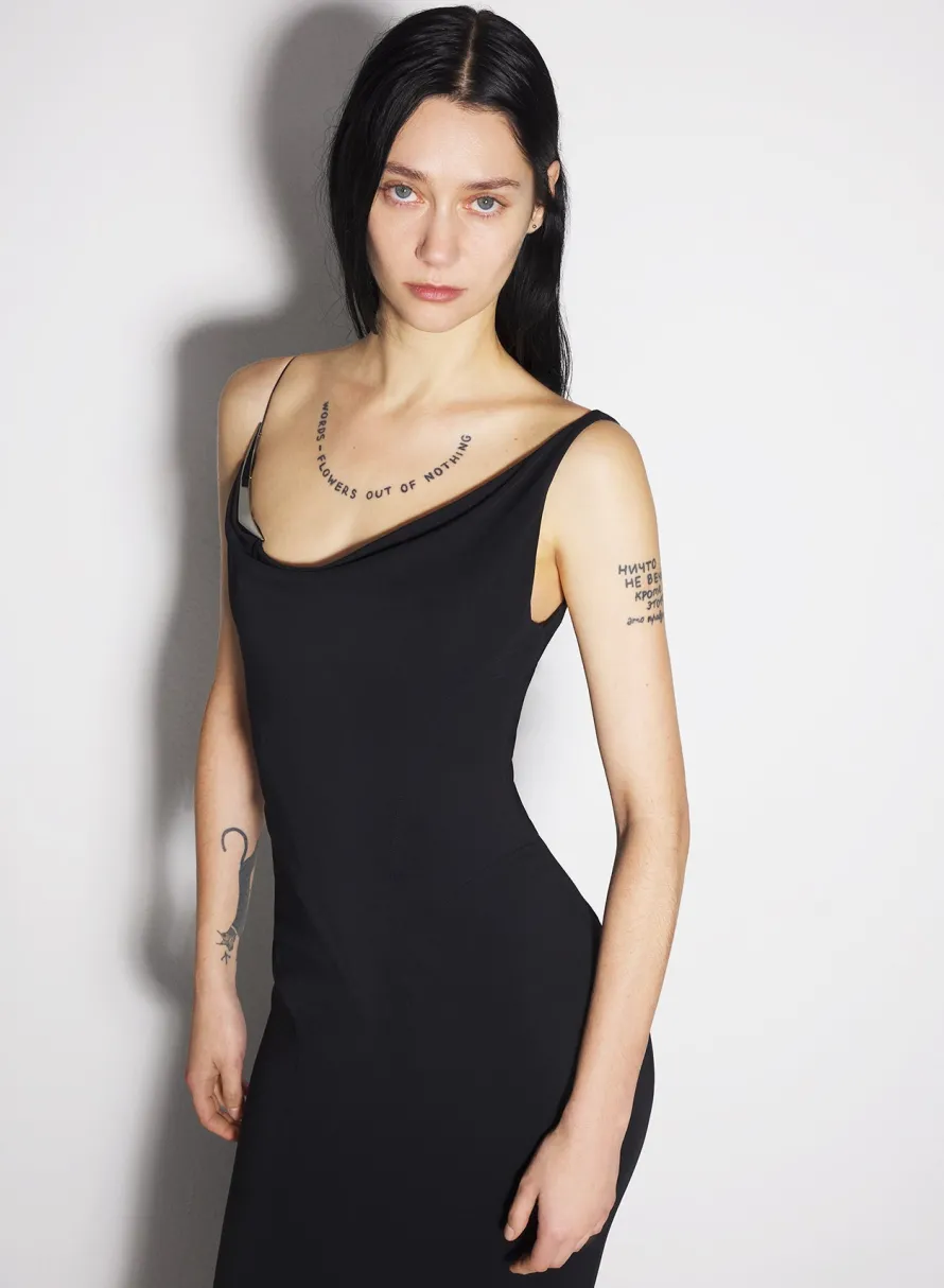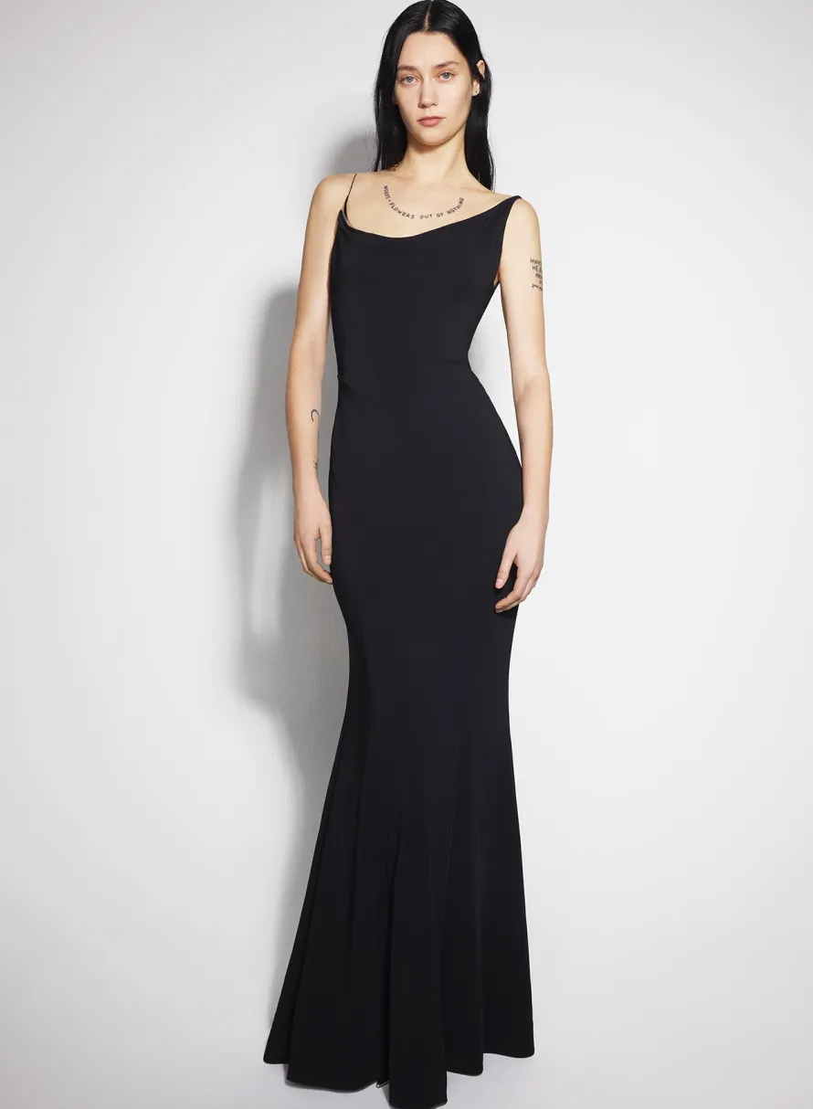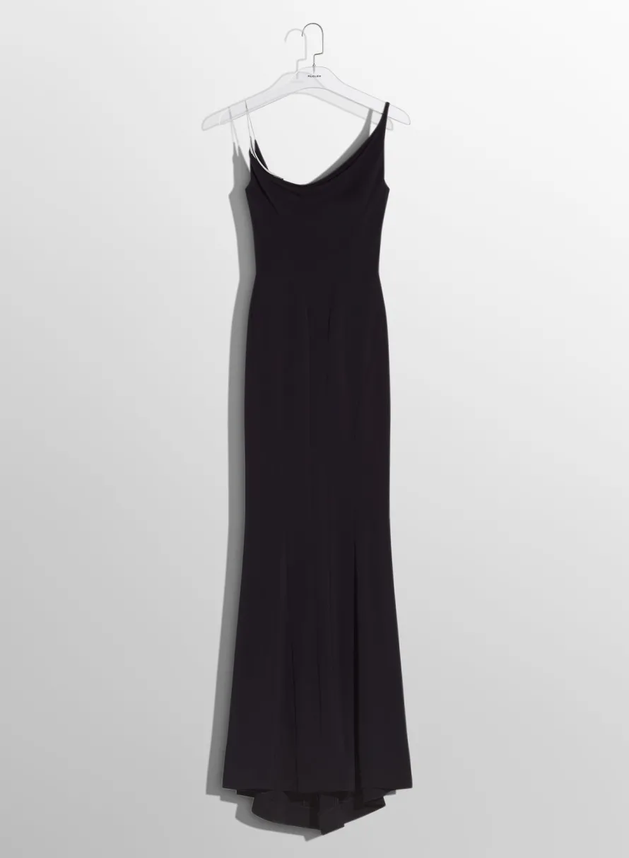 Dresses & Catsuits|MUGLER black crepe gown with metallic detail