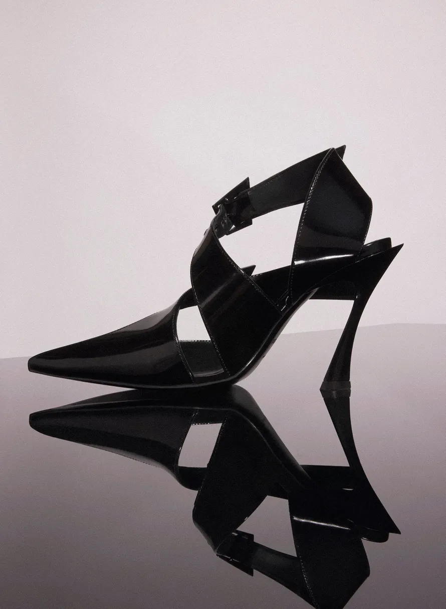 Italian craftmanshippointy toehigh stiletto Fang 95mm (3.7 inches) heelslip-on desgintwo adjustable bucklesitalian leath…