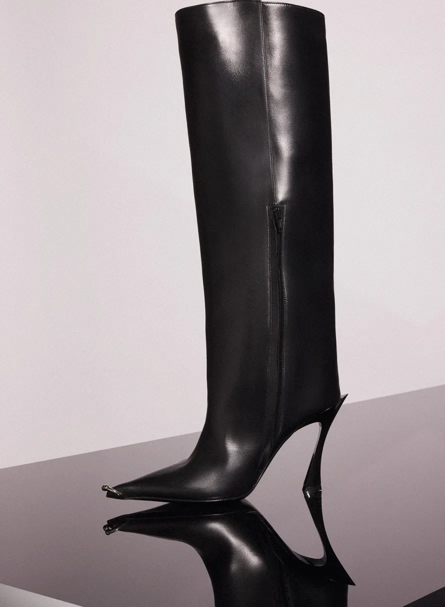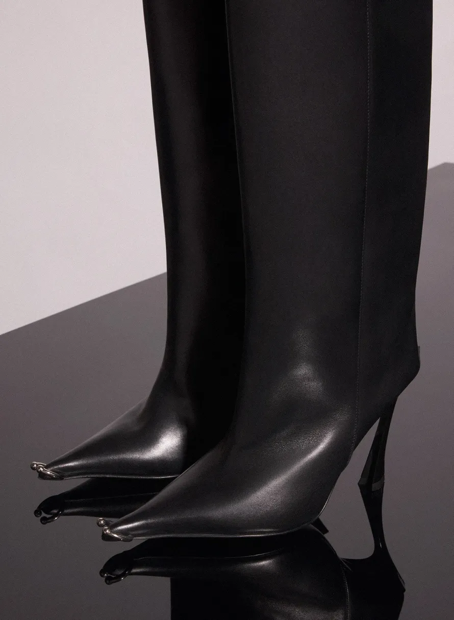 Shoes|MUGLER black leather piercing fang 95 boots
