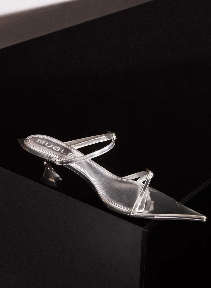 Shoes|MUGLER Metallic leather Fang 55 sandals