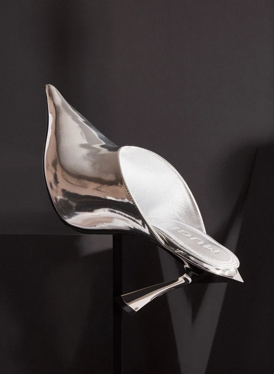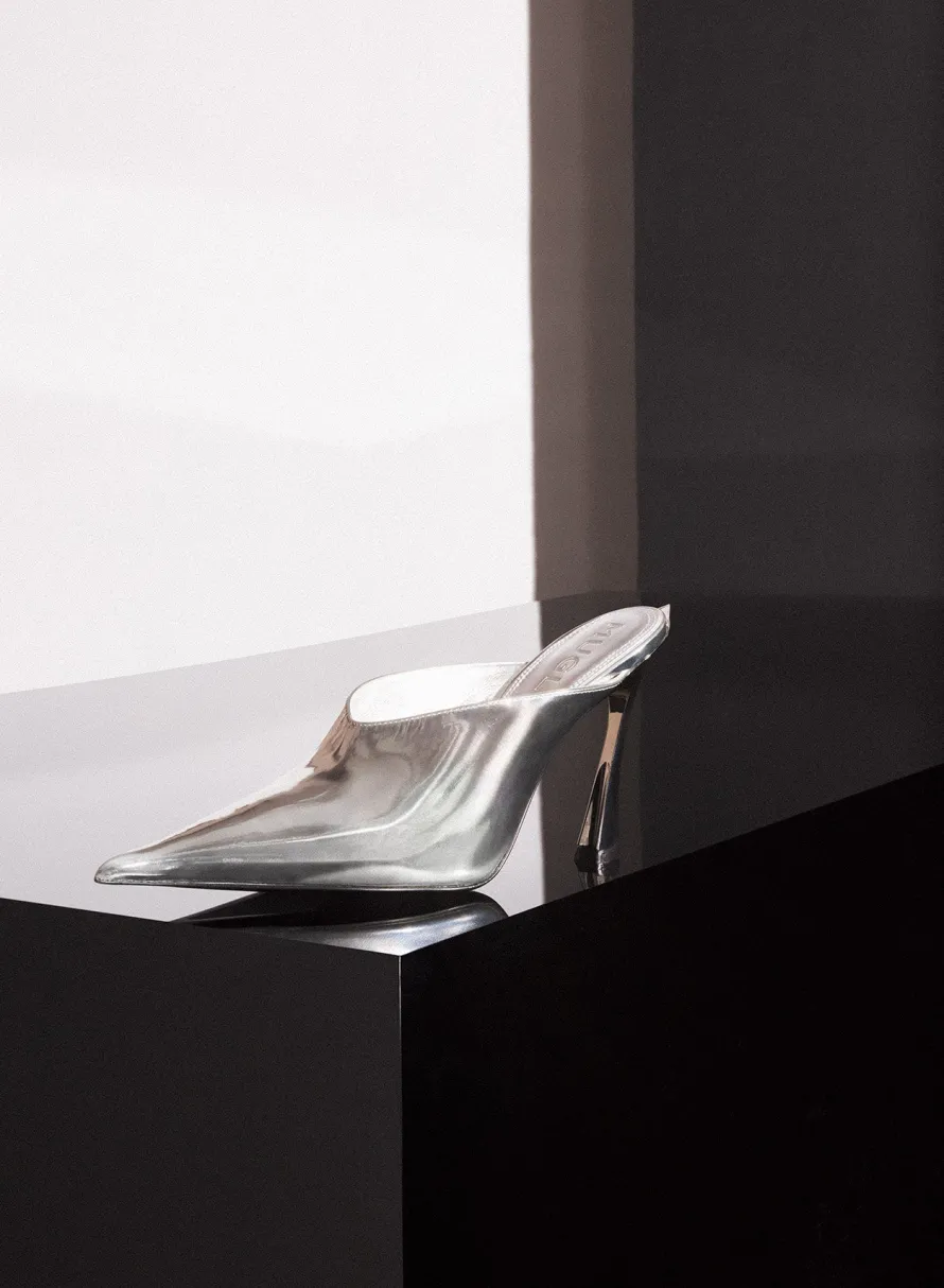 Shoes|MUGLER Metallic leather Fang 95 mules