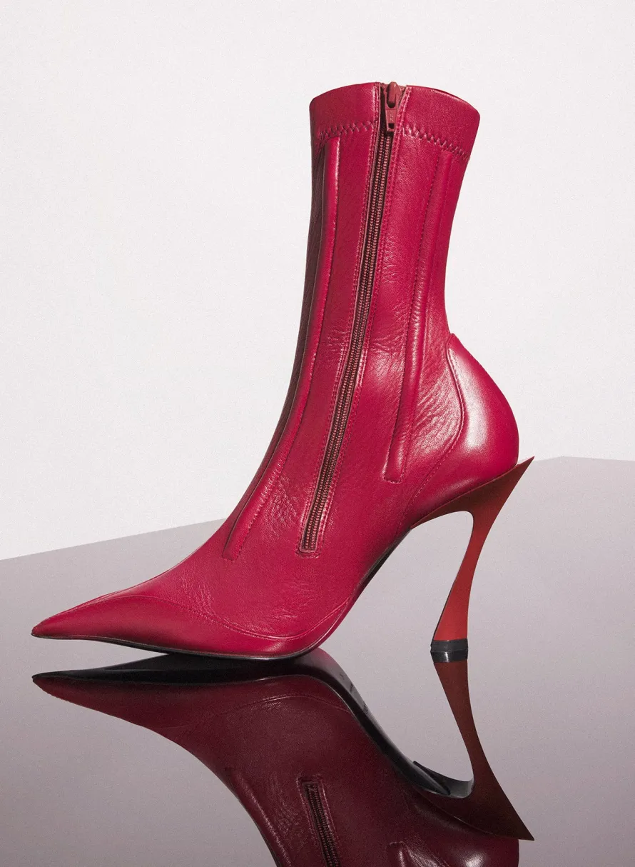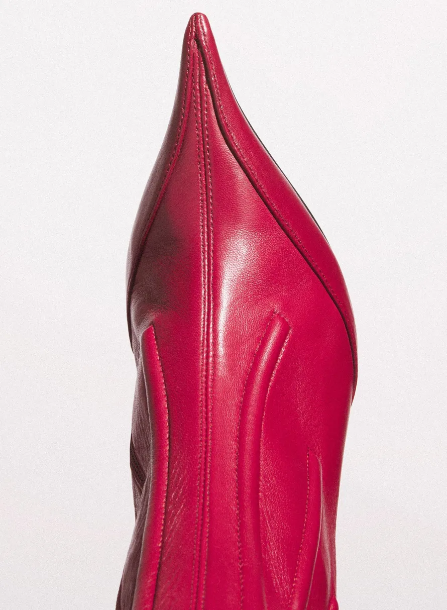 Shoes|MUGLER red boned leather fang 95 ankle boots
