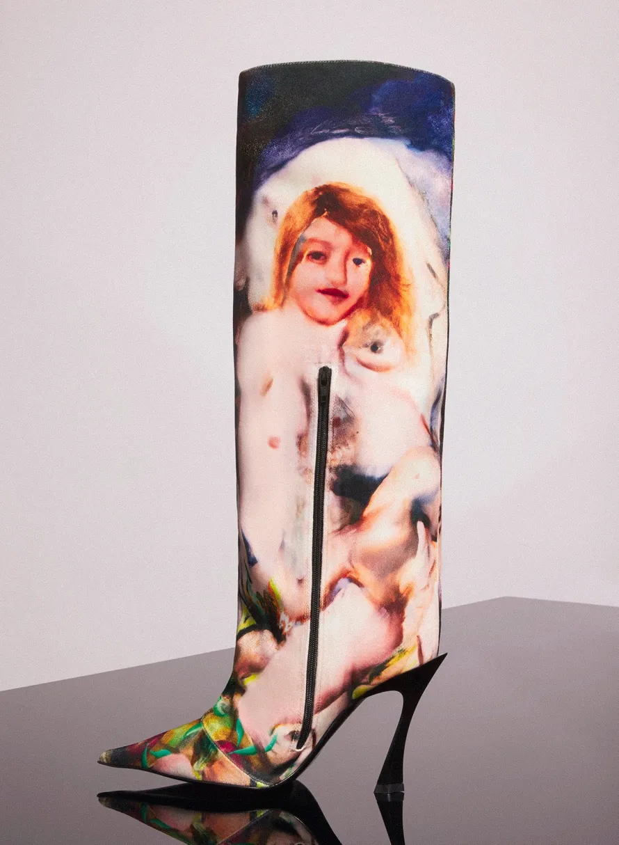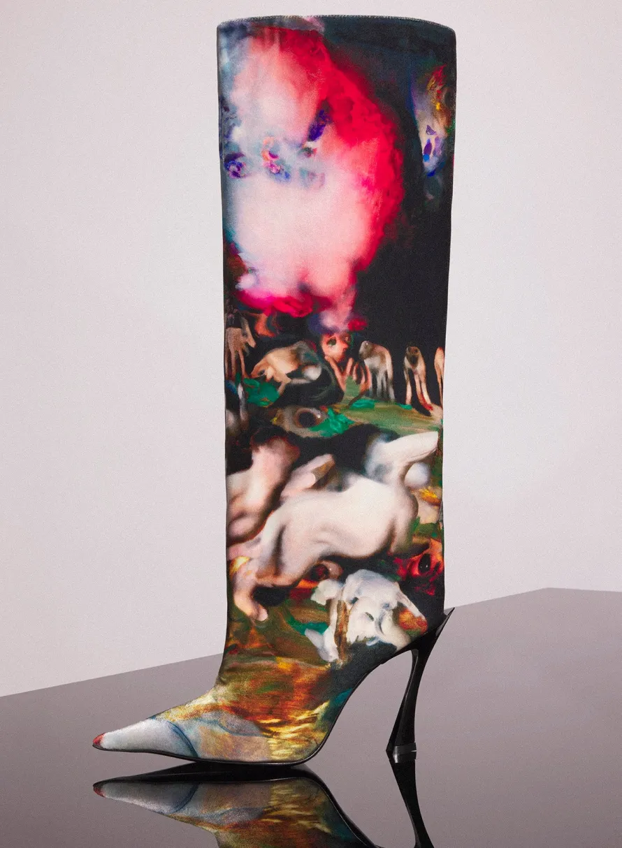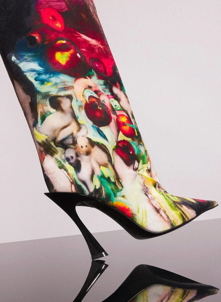 Shoes|Mugler X Ambera Wellmann|MUGLER x Ambera Wellmann printed velvet fang 95 knee high boots